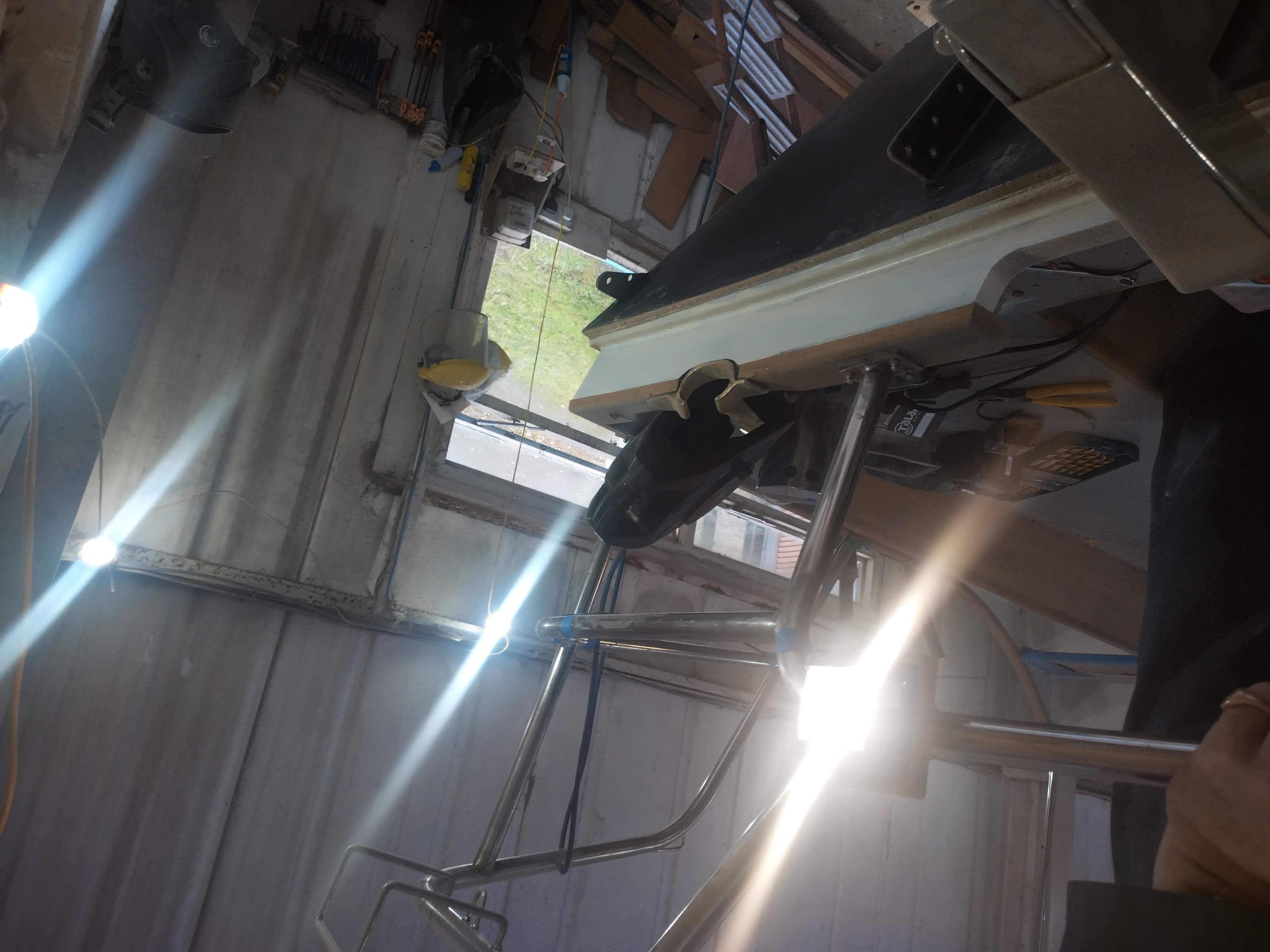 The good news was that, having initially failed to get a cable mouse through the conduit I had fitted down the centre void of the mast, due to the friction in that length of conduit, and a flexible nylon draw tape. In order to get this done then, I had to purchase some next-level fibreglass cable rods, and these pushed through far more easily. With these I pulled through a string mouse, so that nearer the time of stepping I can pull through the coaxial cable for the AIS aerial I intend to put at the masthead. Also “to do” over the winter will be to modify the masthead fitting (ready made, cannibalised from the mainmast, which will get an aluminium tube extension with welded masthead fittings) – currently it is an open collar, but I will weld on a steel cap to protect the end grain of the mast, incorporating a lug for fitting an aerial to.
